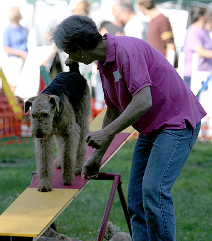 Today I'm three! Two days ago, Mom and I went to a weekend agility trial in Granby, Mass., my first trial in almost a year. We stopped practicing last fall (it was a baaaad winter and Mom had too much to do!) but we started again in May. I like agility! I'm ready to run! |